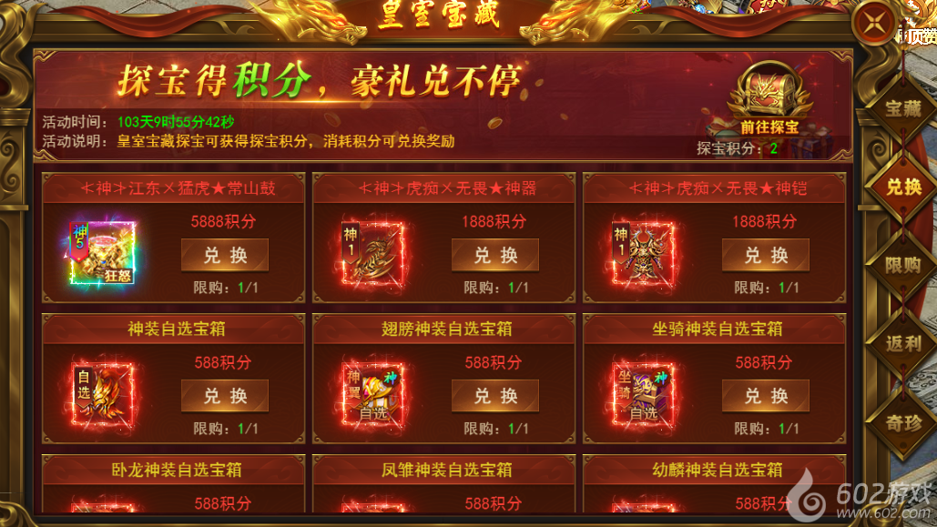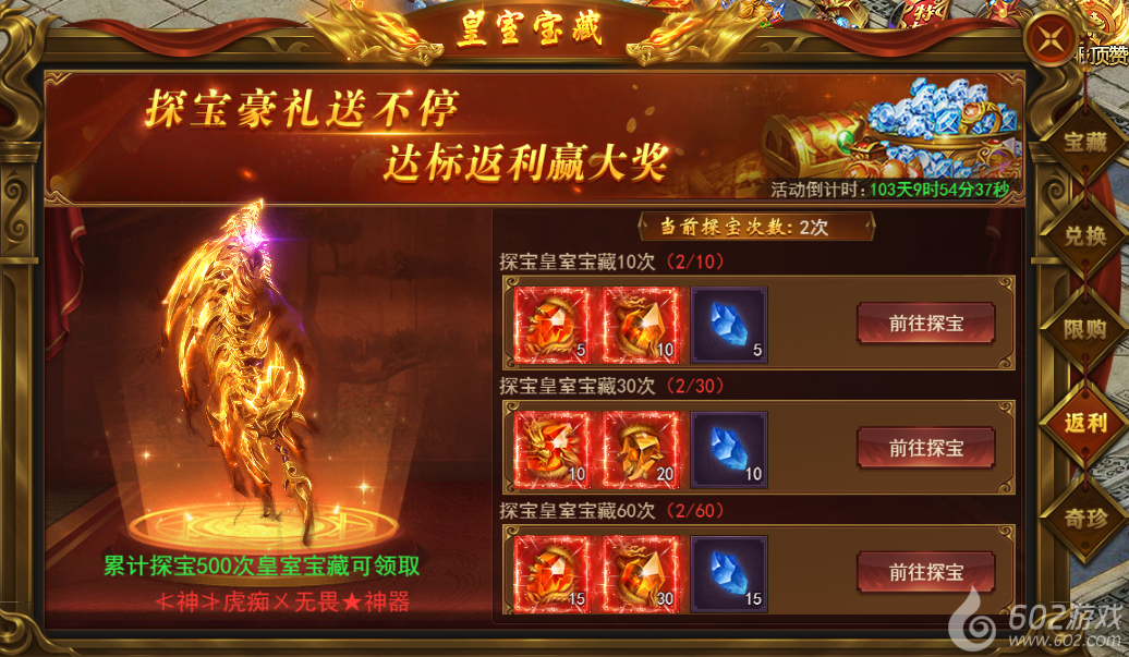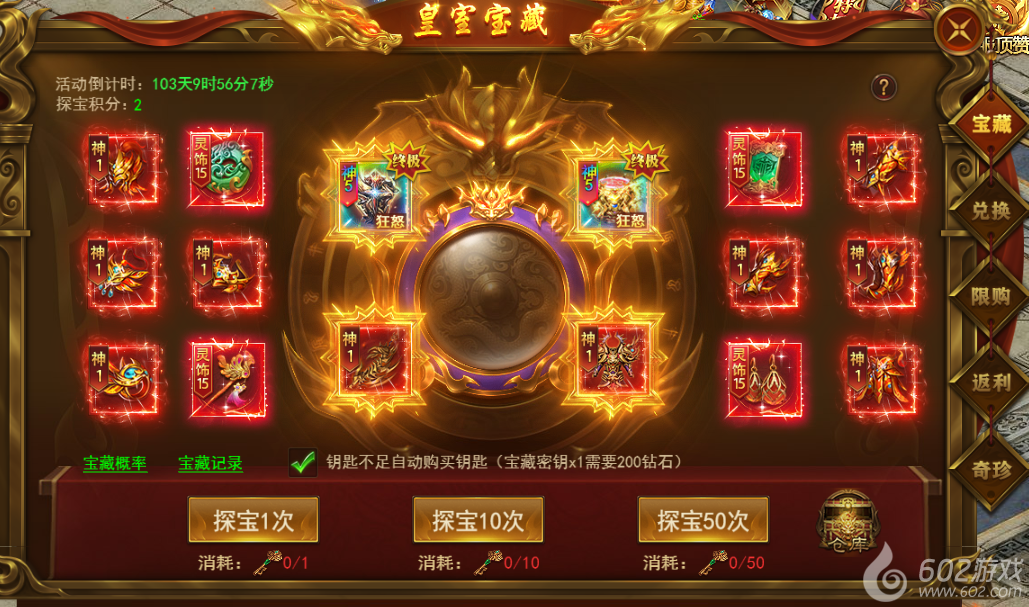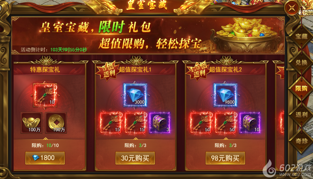 皇室宝藏-探宝1 皇室宝藏-兑换2 皇室宝藏-限购3 皇室宝藏-返利4 皇室宝藏-奇珍5